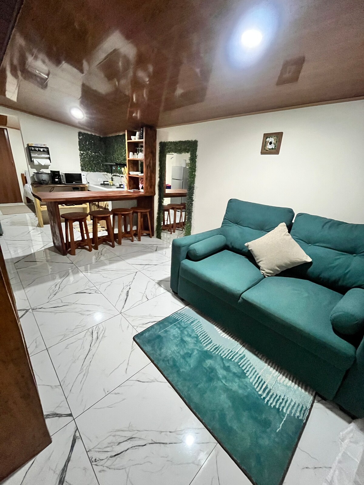 Beliggende i en af de fem blå zoner i verden, i centrum af Hojancha, 45 minutter fra Playa Carrillo. Ideel til dem, der søger privatliv, komfort og natur. Central, sikker og kæledyrsvenlig lejlighed. Rummelig have med frugttræer, parkering til forskellige køretøjer og natbelysning og overvågningskameraer. Inkluderer: internet, kabel-tv, aircondition og vandvarmer. Perfekt til afslapning, fjernarbejde eller udforskning af regionen med ro i sindet.
