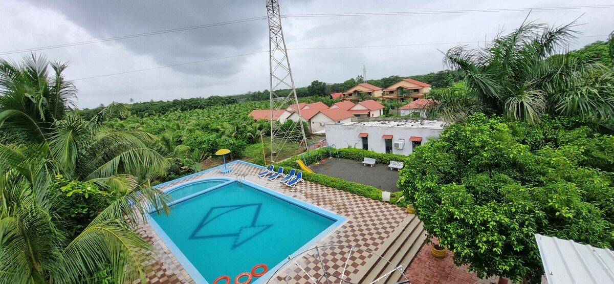 Green space for your healthy family , 160mango tree , garden 🪴 , kids swimming pool 🏊♂️ , Free parking, heritage train view 🚂 , WiFi kitchen , Fridge , RO water 💧, campfire 🔥 non AC , 2 outdoor swing , 2 bedroom, 1 kitchen with living room, 3 attached toilet bathroom. (For 6 person) (alcohol not allowed 🚫) (vegetarian kitchen) Extra mattress available