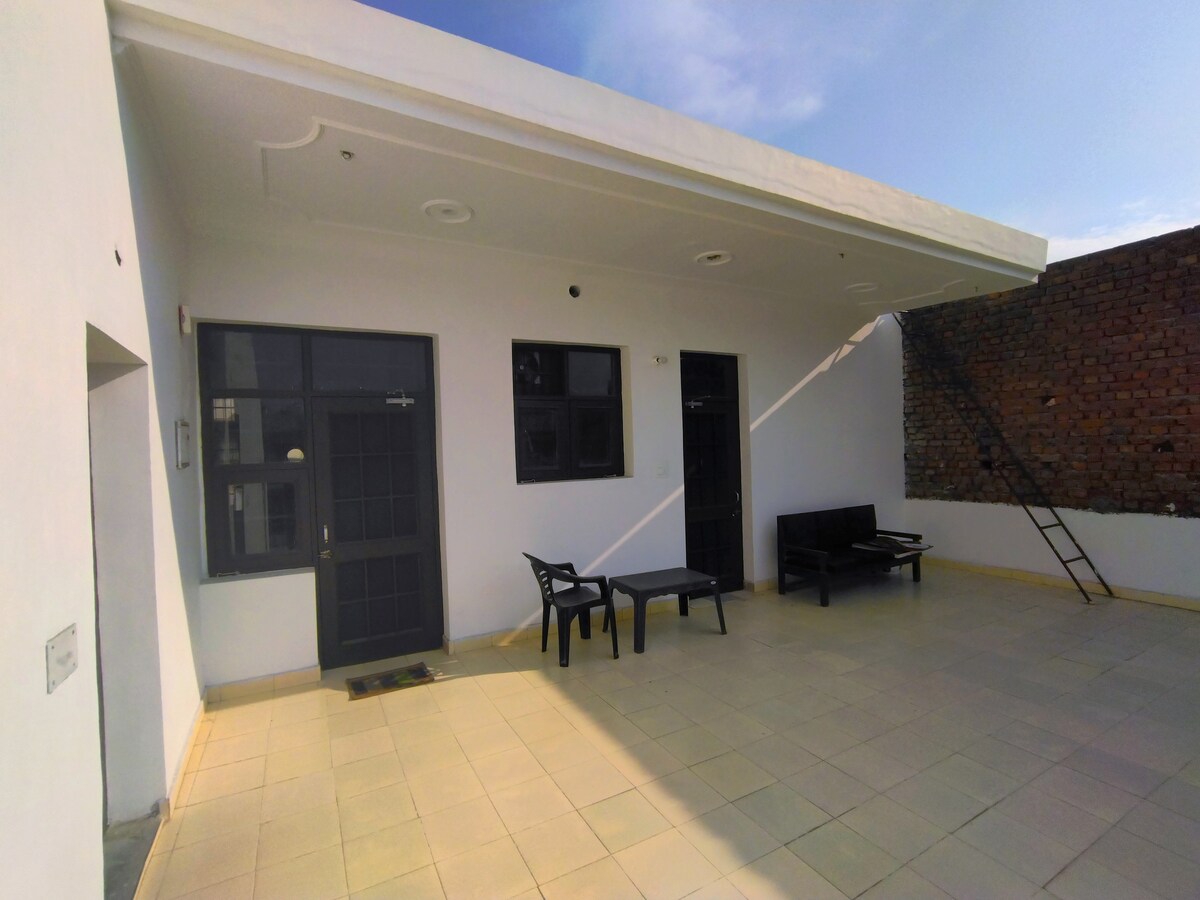 Lyst og hyggeligt hjem ved siden af et mangotræ i et roligt, sikkert og fredeligt nabolag i Sektor 12, Panchkula. Du har fuld privat adgang til vores anden sal, som omfatter TO soveværelser (med aircondition), TO badeværelser, en stue (med aircondition), et fuldt udstyret køkken og to terrasser (en smal foran og en stor bagpå). Alchemist Hospital, Paras Hospital, Tau Devi Lal Stadium ligger kun få minutter væk. 2 minutters kørsel fra ind-/udkørsel på Shimla-Delhi-motorvejen.