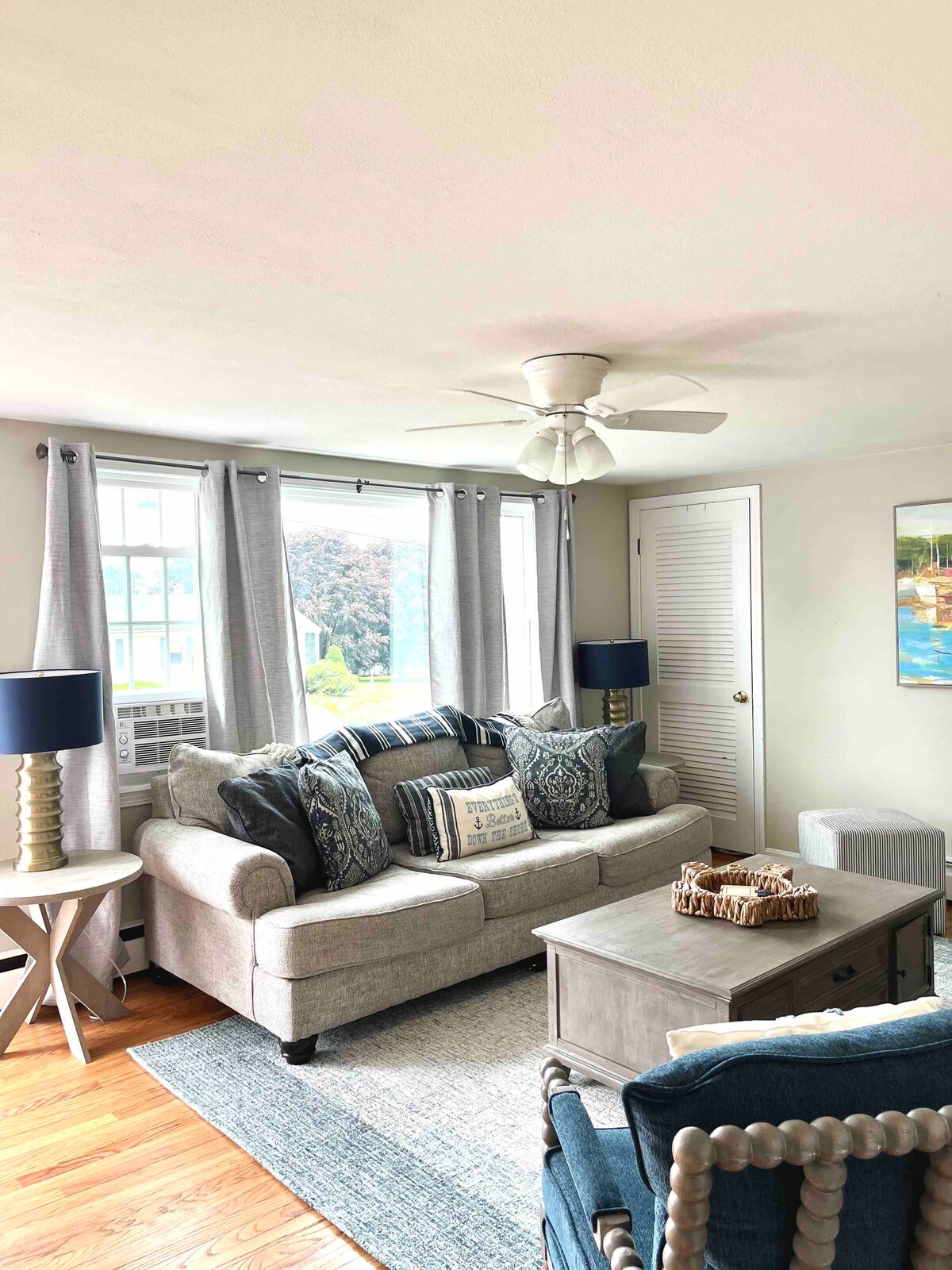 Denne solrige lejlighed er tilknyttet et familiehjem, men har sit eget private rum - herunder en privat indgang, dedikeret parkeringsplads, lille terrasse og græsplæne med siddepladser - og ligger i det gangbare hjerte af Wakefield, i nærheden af URI, strande, Newport, cykelsti. Queensize-seng; queensize-sovesofa; bedst egnet til 2 voksne (sovesofaen fungerer bedst til børn). Køleskab, mikro, kaffe, grill (ingen ovn). Allergivenlig: Free & Clear vaskemidler; ingen kæledyr. Indtjekning uden vært. Automatisk rabat for længerevarende ophold.