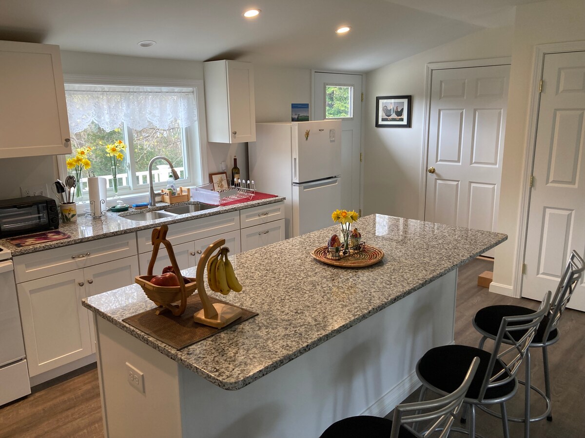 Er du klar til at forlade dit hjem for en ferie i nærheden af stranden? Vores hyggelige studie med egen indgang ligger i et roligt kvarter, 1,6 km fra East Matunuck State Beach og inden for gåafstand til en af de mest populære restauranter, der tilbyder mad fra gården/dammen til bordet - Matunuck Oyster Bar. Nyd de lokale restauranter, gå langs vores smukke strand, besøg Block Island, Newport, Watch Hill eller Mystic. Vi er 15 minutter fra University of RI - Nyd en sportsbegivenhed eller besøg med dine børn eller venner.