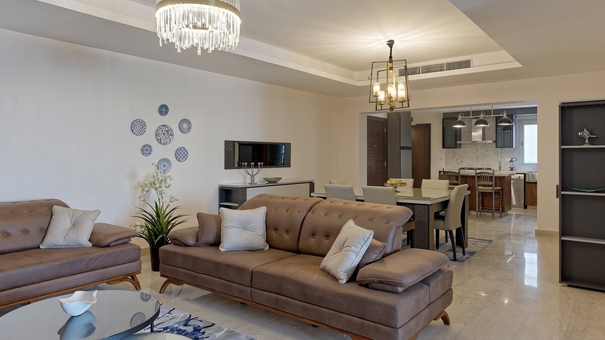 Enjoy your stay at this peaceful, elegant compound with everything is around you in just a few minutes walking 😊 Security cameras in public places and entrances. Security guards 24/7 7mart, pharmacy , post office , dry clean in just one minute walking Reach Starbucks , international restaurants, cafes in minutes walking Enjoy Hyde out and the spacious green areas Gym , Sauna , club house are available with tickets or subscriptions Feel free to reach us if you have any inquiries.
