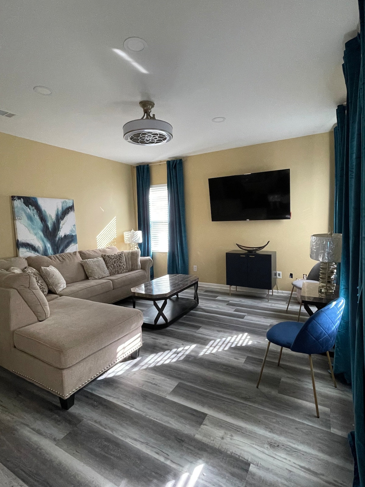 Oplev afslappet luksus i dette rummelige 4BR-retræte med en privat solopvarmet pool, elegant britisk-inspireret indretning og skyhøje 10-fods lofter. Boligen er designet med henblik på komfort og stil og tilbyder både raffinerede detaljer og den plads, familier har brug for til at slappe af. Nyd smart-tv i alle rum, hurtig wi-fi, en indhegnet baghave, hængekøjelounge og grill ved poolen. Perfekt til eksklusive smutture eller familieferier. Poolen er solopvarmet. Temperaturen varierer med vejret og kan være køligere i koldere måneder.