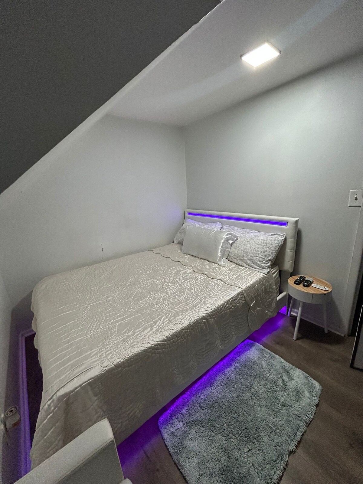 Lys, privat suite med 2 soveværelser og et komplet køkken kun 40 minutter fra NYC, hvor du kan nyde et roligt West Hempstead-kvarter, egen indgang og et komfortabelt sted. Ideel til familier, par eller længerevarende ophold. Lejligheden er en nyindrettet kældersuite med 2 hyggelige soveværelser, en rummelig stue og spiseplads, et fuldt udstyret køkken med køleskab i fuld størrelse, ovn, mikroovn, brødrister og kaffemaskine. Den har et moderne badeværelse med masser af vandtryk i bruseren.