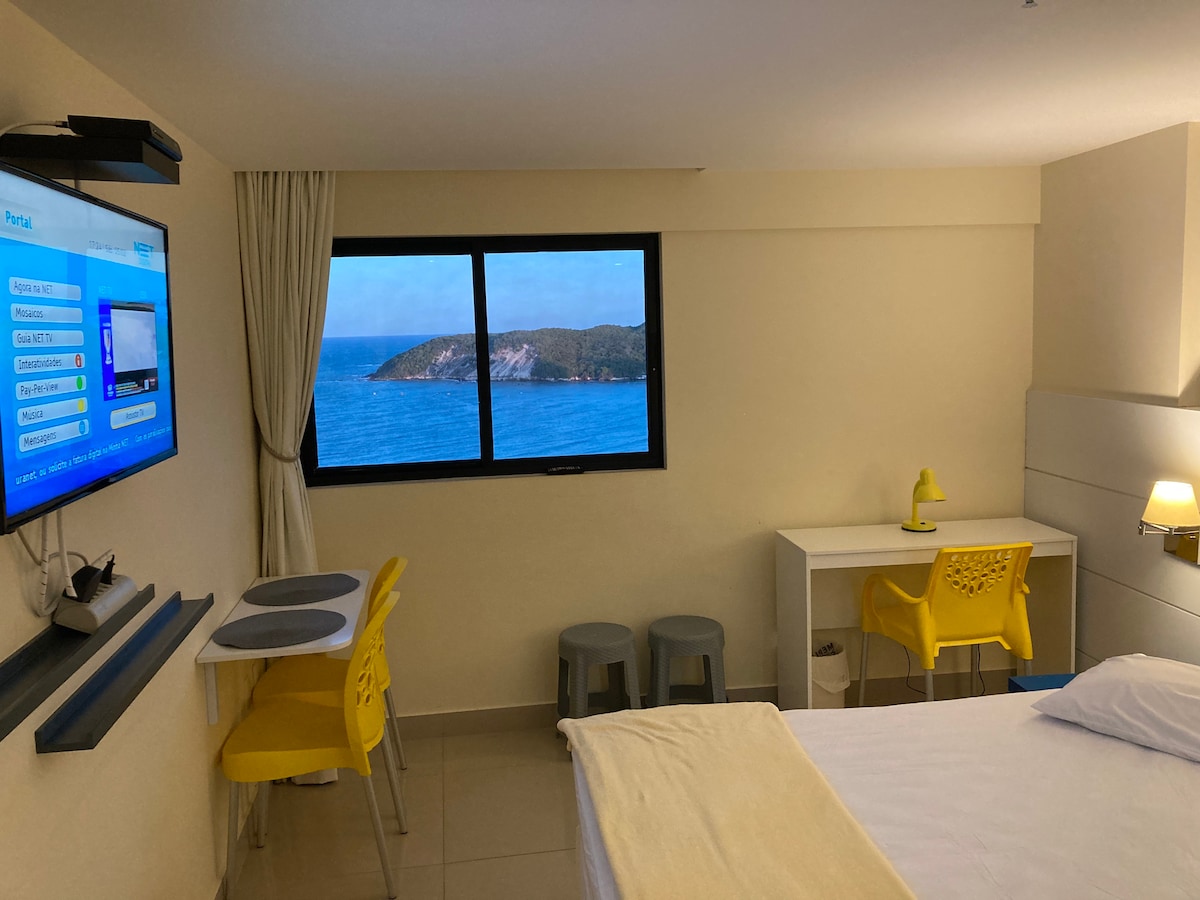 Acorde com uma vista espetacular para o mar no 6º andar do Paradise Flat! Apartamento completo e acolhedor, com cama king, ar-condicionado novo, Wi-Fi veloz, Smart TV e cozinha equipada. Ideal para descansar ou trabalhar com conforto. Piscina, sauna, limpeza inclusa e recepção 24h. Localização privilegiada, perto dos melhores restaurantes e comércios. Viva dias incríveis com praticidade, charme e segurança!