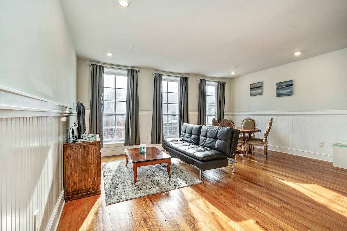 Velkommen til vores nyrenoverede moderne suite med et soveværelse. Beliggende på 2. sal i den historiske gamle bydel i Philadelphia. Kun få minutter fra Liberty Bell, Betsy Ross House, Penn's Landing, Spruce Street Harbor og meget mere. Nabolaget er kendt for sine fashionable butikker, gode restauranter, kunstgallerier og teatre samt et pulserende natteliv. Vores ene soveværelse tilbyder smukke palladianske buevinduer, der åbner ud til naturskønne 3rd Street.