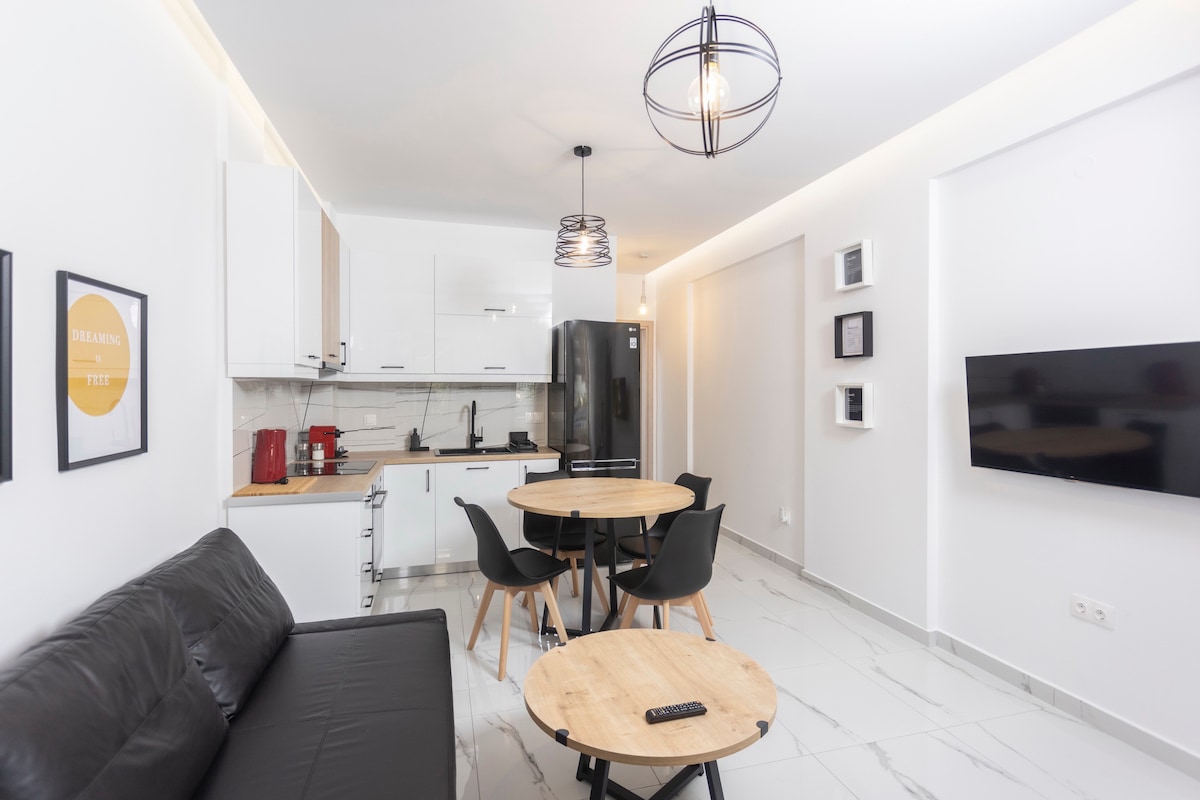 Slap af med hele familien på dette fredelige overnatningssted. SeaWind Luxury Apartments ligger 300 m fra Nea Fokeas Beach og tilbyder indkvartering med aircondition, fuldt udstyret køkken og gratis WiFi. Enhederne har balkon og fladskærms-tv, luksuriøst badeværelse med brusebad, toilet og tre soveværelser. Der er poolhave og en terrasse på SeaWind Luxury Apartments Nea Fokea.