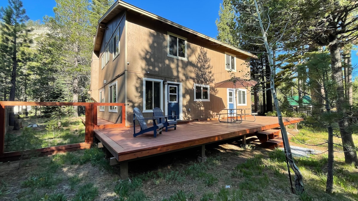 Vores basecamp ved Lake Tahoe ligger skjult i National Forest Land og er ideelt placeret mellem flere skisportssteder og søen. Det er et særligt sted. Nyd vandreture, snesko og Upper Truckee River, der ligger få skridt fra bagdøren, omgivet af høje fyrretræer, skove og bjerge. Godt optimeret med poolbord, pejse, PS5, udstyret køkken, stort spisebord og komfortable møbler. Med 7 senge, herunder 3 kingsize-senge og et køjesengsrum, kan vi være vært for 8 gæster plus ekstra børn 5 og derunder.