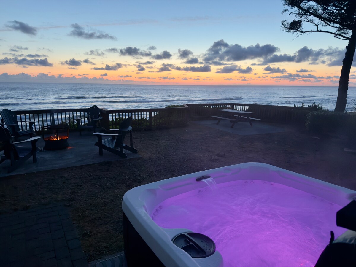 Vågn op til panoramaudsigt over Stillehavet og den historiske Proposal Rock, og oplev den ultimative strandferie i vores strandhus ved havet i Neskowin i Oregon. Gå ud ad bagdøren for at få direkte adgang til stranden og kilometerlange sandkyster. Se solnedgange fra huset eller baghaven, og slap derefter af i spabadet ved havet, mens bølgerne ruller ind nedenfor. Stille, naturskønt og uforglemmeligt. Den perfekte smuttur til Oregons kyst for at slappe af, gå ture på stranden og opleve eventyr ved kysten.