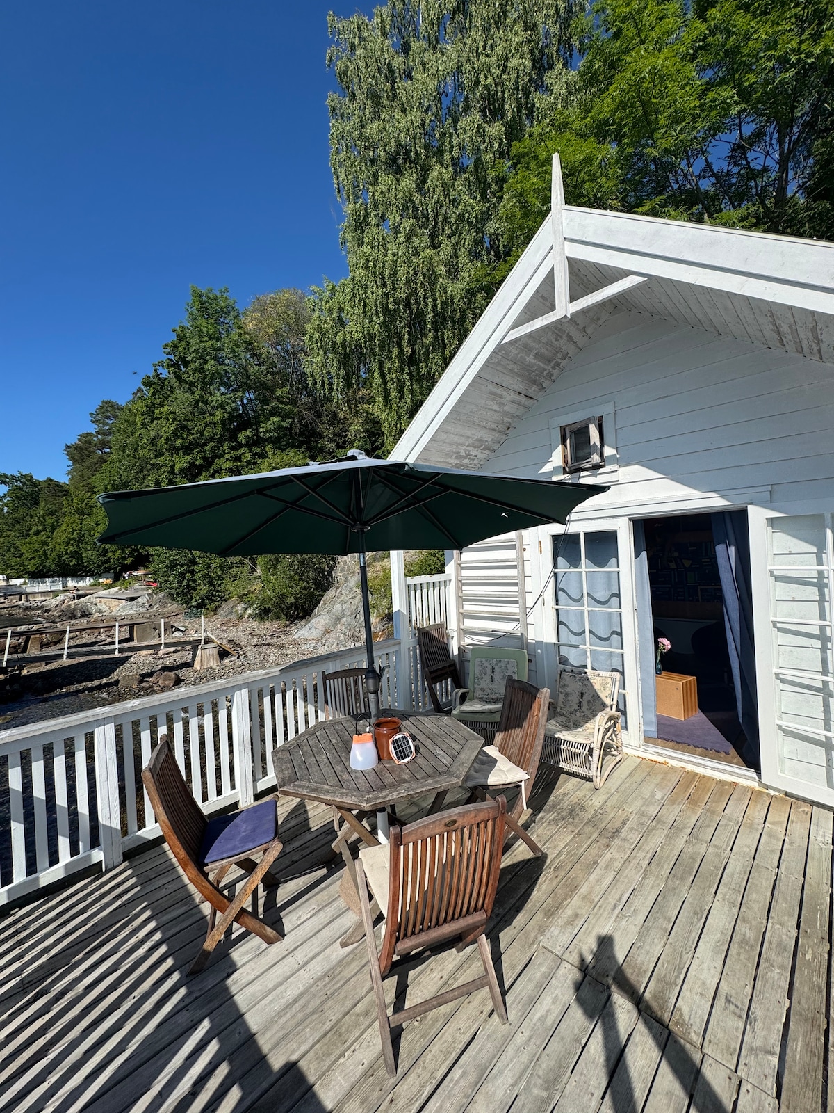 Få en 70 m2, 2-værelses lejlighed med opvarmede gulve og en pejs helt for dig selv. En afsondret have med spisebord, hængekøje og en lejrbålspande, to stabile kajakker med våddragter og redningsveste står til din rådighed. Fantastiske muligheder for udendørsliv og afslapning og kun en time fra hjertet af Oslo. Kommunikation med bus og færge hvert 30. minut.