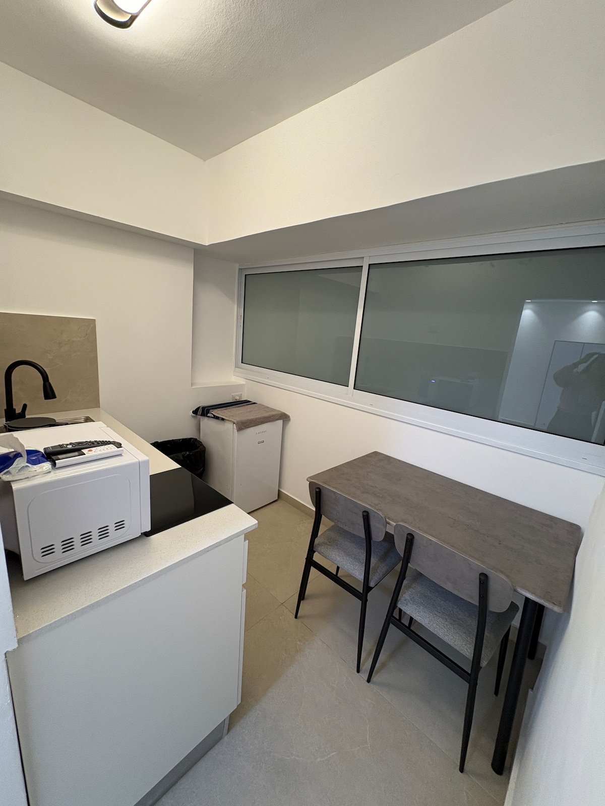 Moderne atelierlejlighed i Tel Avivs Old North, kun 8 minutters gang til Hilton Beach. Beliggende på 5. sal med elevatoradgang (+ 10 trin), har den en komfortabel dobbeltseng, fuldt udstyret tekøkken, spiseplads, A/C, Wi-Fi og en stor privat balkon med siddepladser. Bygningen har et bombeskjul på 5. sal. Et par skridt fra Dizengoff, caféer, butikker og offentlig transport – ideel til solorejsende eller par.