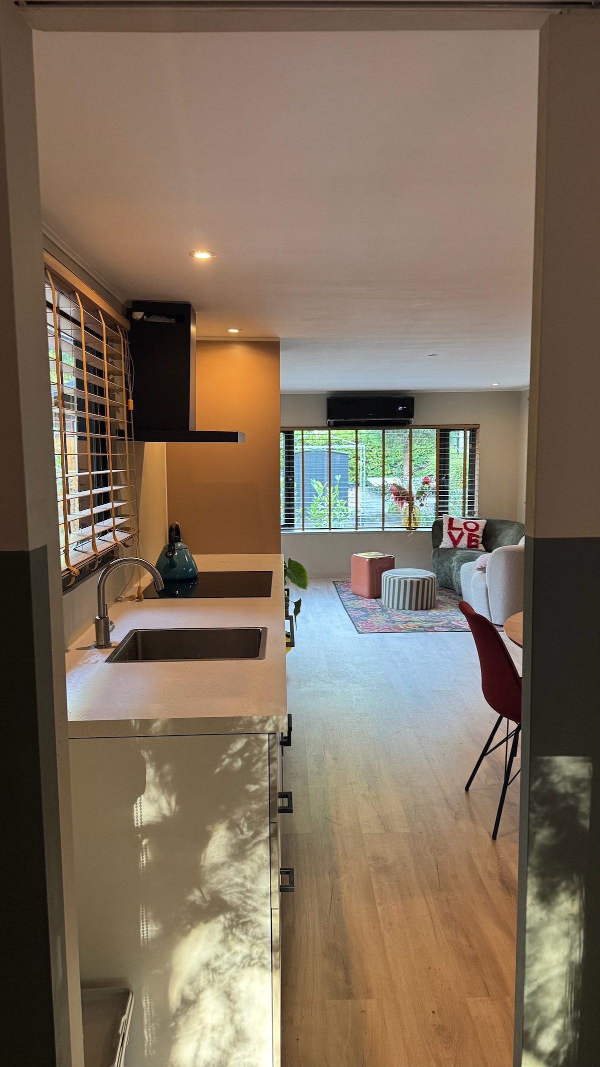 Velkommen til lejlighed Dichtbij; din byflugt! Hvor dejligt, at du har fundet vores særlige sted. Lejligheden er en vidunderlig bolig i Brabant Kempen. Et betagende stykke natur venter på dig mindre end en kilometer væk. Tag dine vandrestøvler på til en afslappet gåtur, start din dag med en morgentur eller tag på cykeltur. Lad dig overraske af den grønne oase, der er perfekt i balance med den hippe stemning i dit ophold. Slap af, udforsk og lad dig inspirere!
