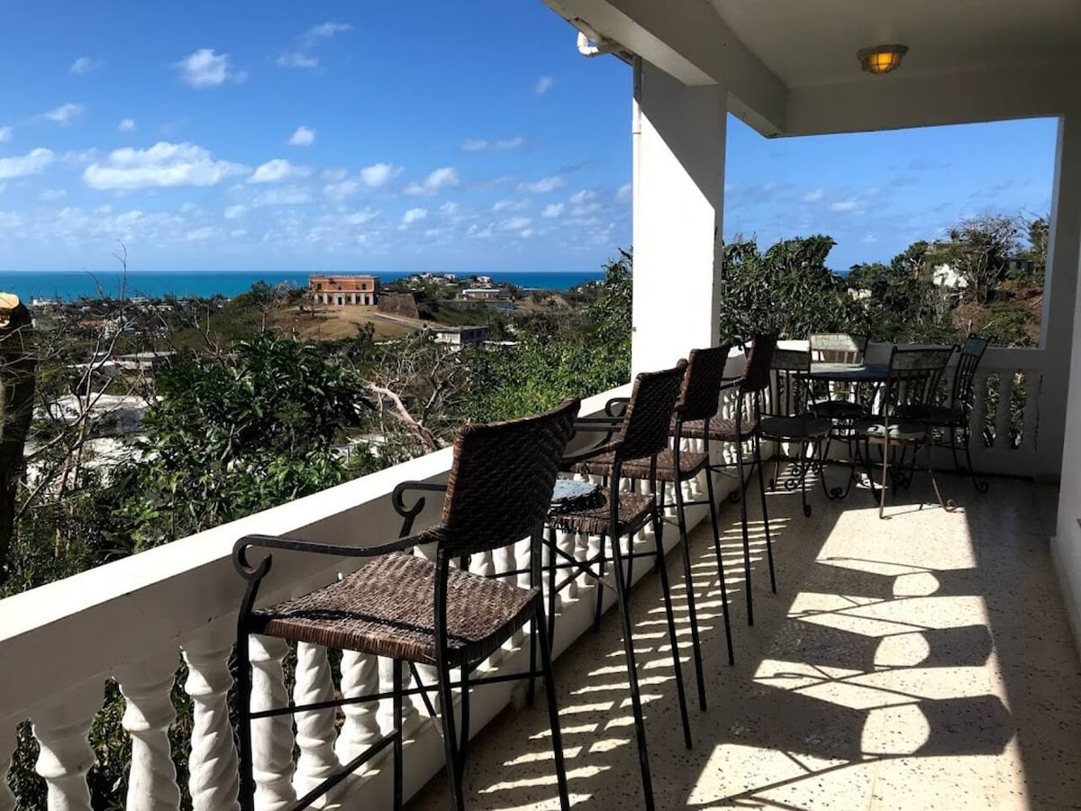 Helt airconditioneret hus beliggende på toppen af en bakke på en ejendom på 7 hektar med udsigt over den smukke by Coamo og nabolande. Tre soveværelser med aircondition og queensize-senge plus en køjeseng i et af værelserne. Hovedport med fjernbetjening, wi-fi og tv. Fuldt udstyret køkken. Terrasse med smuk udsigt, stille og fredelige omgivelser til at se solnedgange og solopgange. Pavillon med ½ badeværelse. Kom i kontakt med naturen, og besøg det smukke sydlige område af Puerto Rico.