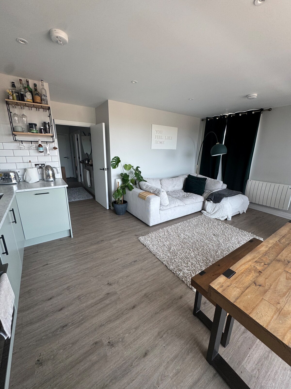 Rummelig lejlighed med periodekarakteristika. Dejligt opholdsområde med 2 sofaer, buet vindue med havudsigt. 55" Sky Glass TV, stort soveværelse med rolig udsigt til baghaven. Dobbeltseng og 1 sammenklappelig seng med ordentlig madras til rådighed. Badeværelse med bruser over badekar. Lyst køkken med dobbeltdøre til forhøjet terrasse, perfekt til morgenkaffe og trin ned til stor privat lukket have. Parkeringskort til gadeparkering uden for ejendommen