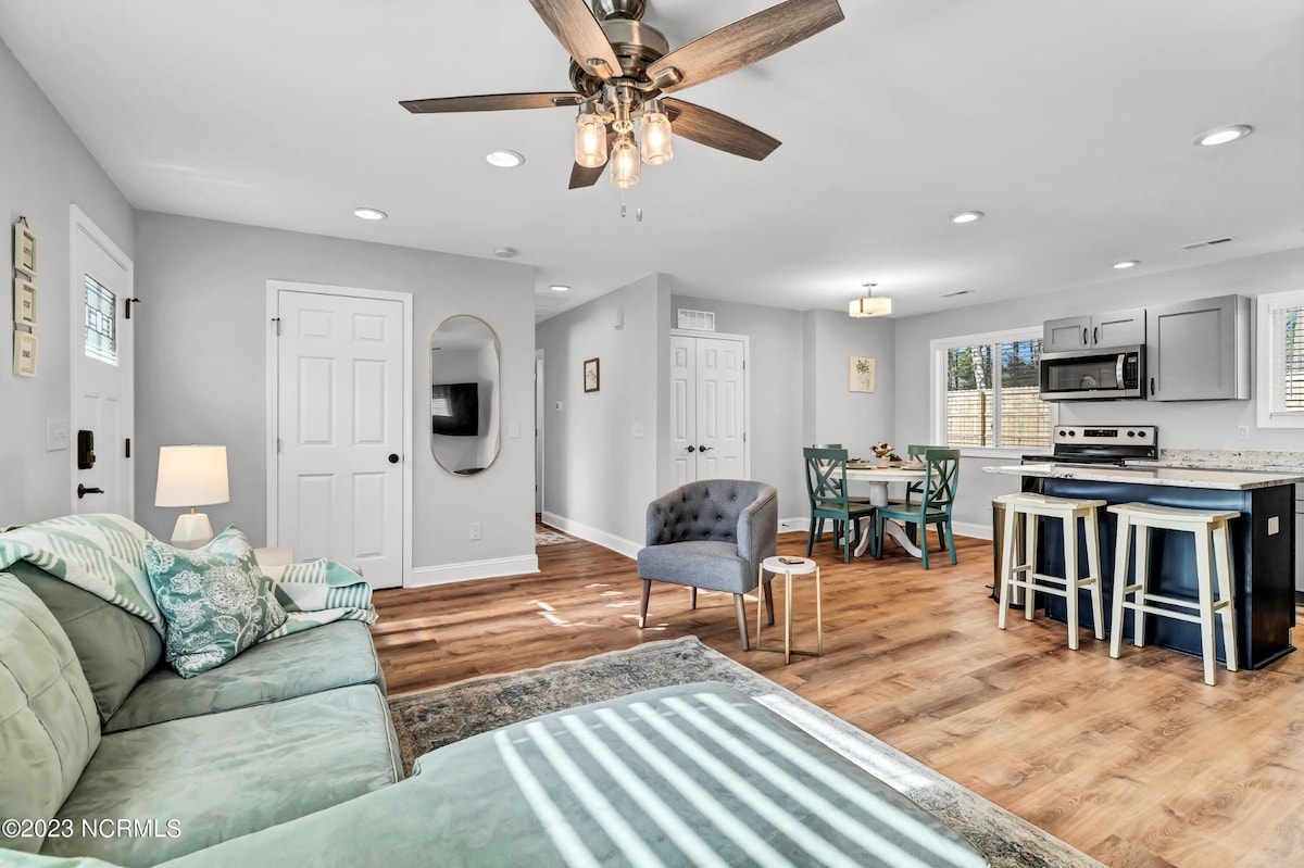 Nyd et hyggeligt ophold i denne centralt beliggende bolig i Wilmington's fredelige Seagate-lomme ved siden af UNCW. Denne ABNB, der er kendetegnet ved et smukt køkken og farverige haver, er en gevinst for alle, der rejser med familie, venner eller FURiends. Solen er generøs, fylder huset med morgenlys og dykker derefter ned i horisonten for naturskønne solnedgange i baghaven. Vi har møbleret boligen med hyggelige nætter, madlavning og strandgæster i tankerne. Alle er velkomne! Der tilbydes rabatter for ugentlige/månedlige bookinger.