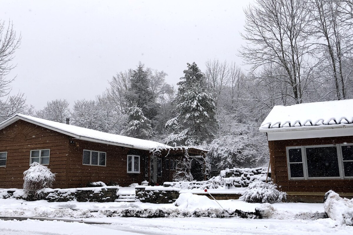 Vores hyggelige A-rammehytte ligger blandt Hemlock-træer og få skridt fra et 30 fods vandfald. Den ligger på 33 private hektar forbundet med statslig jord, og du kan nyde udsigten over vandfaldet, mens du drikker kaffe foran pejsen. Casitaen blev bevidst designet til at føles som et hjem væk fra hjemmet. Om sommeren kan du køle af i vandfald og private vandløb, om efteråret kan du nyde det fantastiske løv, og om vinteren kan du stå på ski/snowboard på Belleayre (25 minutter væk). Alder Lake & Pepacton Reservoir fiskeri ligger 10 minutter væk.