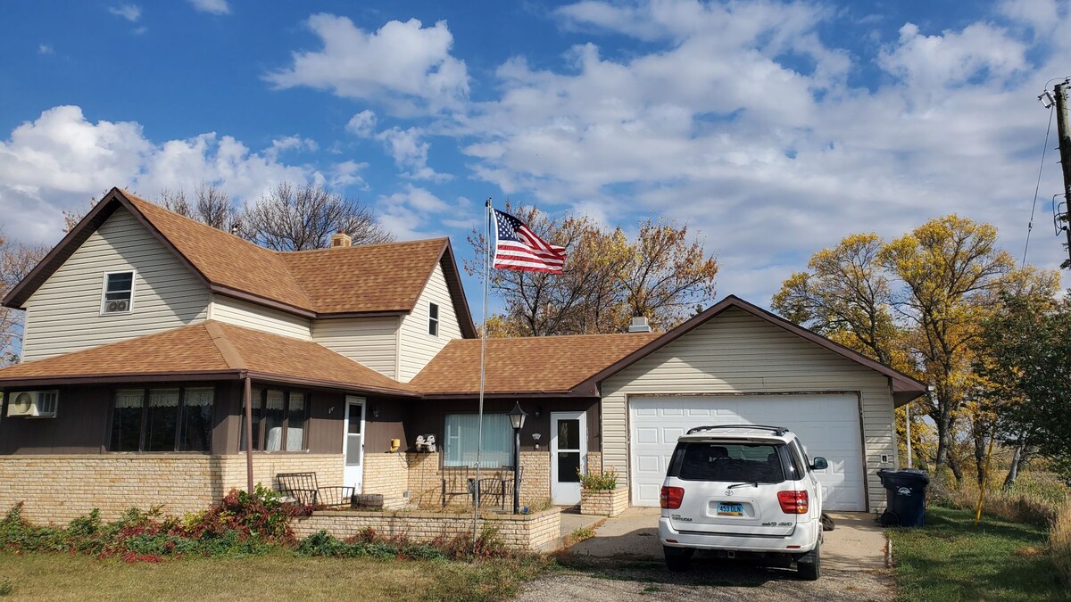 Gammelt bondehus, der nu bruges som jagtlejr. Vi holder det rent, men det er meget rustikt med en blanding af gamle og nye møbler. Køkkenet er gammelt, men har nye apparater til madlavning. Beliggende i hjertet af præriehulleregionen med fremragende jagtmuligheder. Lidt over en time i hver retning til Bismarck, Minot, Devil's Lake og Jamestown. Huset blev bygget i 1950'erne, men har ny ovn, vandvarmer og el. Tre vinduesklimaanlæg til sommeren.