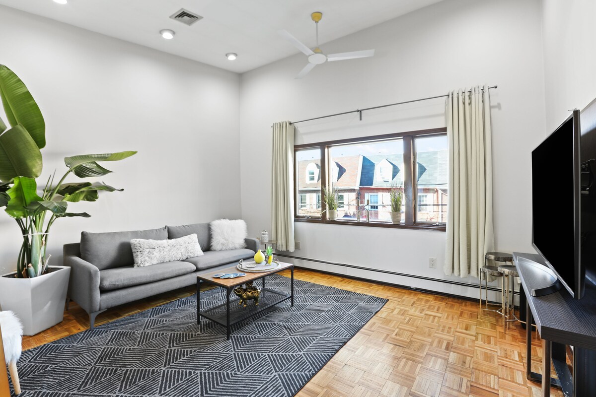Solrigt loft med 2 soveværelser • Arbejd, slap af, få minutter til NYC