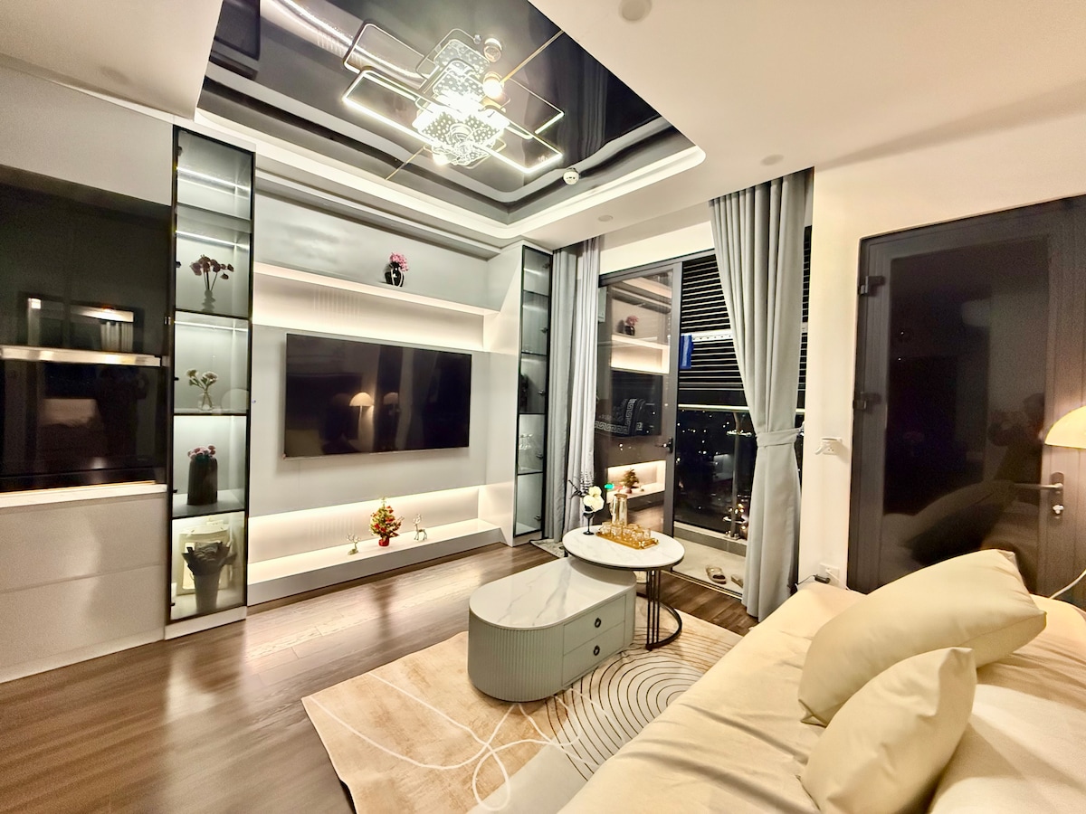 Superfin 2BR-lejlighed, Vinhomes Vu Yen med udsigt til fyrværkeri