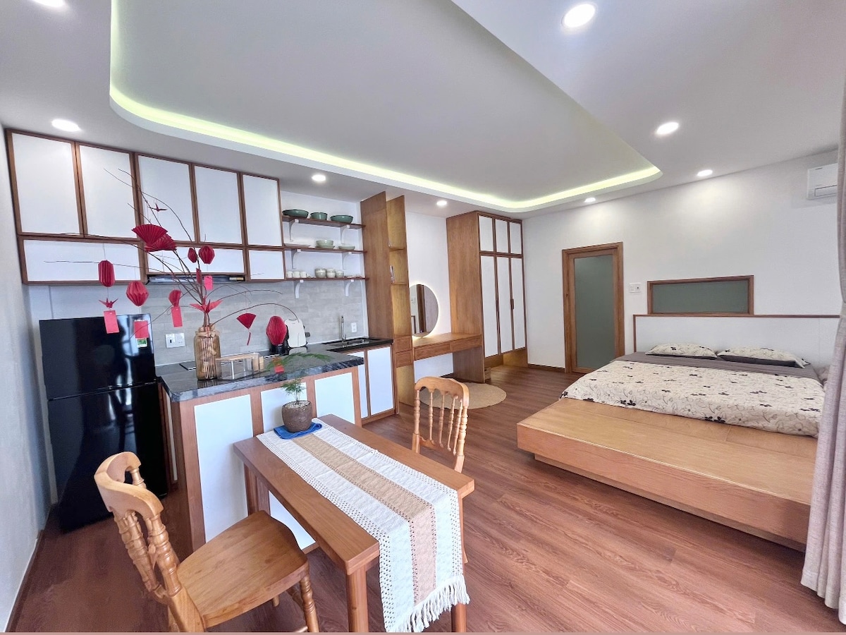 Xin chao, velkommen til leCam — en privat 2BR 2BA lejlighed på 28. etage med hav- og byudsigt. Boligen er indrettet med Wabi-Sabi-vibes: enkel, ren og superhyggelig. Det er stille, fuld af naturligt lys, og der er en behagelig sovesofa, hvis I er en gruppe på 5. Bygningen er sikker med vagter og centralt beliggende - få minutter fra stranden, Dam Market, døgnåbne butikker og fantastisk lokal mad