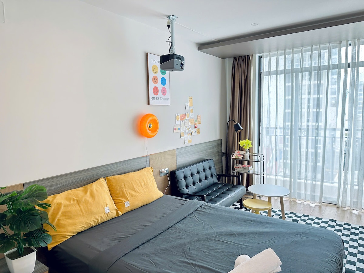 Hej, jeg hedder Kristine og har stor erfaring med at byde gæster velkommen. Dette er min nye lejlighed lige i centrum af Nha Trang by, kun 5 minutter med taxa fra stranden. Mine studier er omhyggeligt designet af mig med farverige dekorationer, hvert rum vil blive indrettet efter et andet tema. - Hyggelig lejlighed med alle faciliteter såsom køkkenredskaber og balkon. - Projektor i rummet - Bygningen har elevator - Rengøring Jeg håber, du er glad for min dejlige bolig.