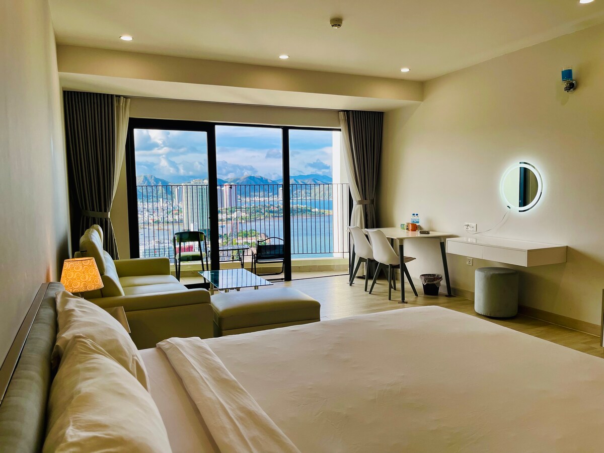 Velkommen til min lejlighed på Marina Suites Nha Trang - No. 25 Phan Chu Trinh, Van Thanh, Nha Trang - Lejligheden har et område på 60 m2 med 1 soveværelse og 1WC med separat stue og køkken. Stuen med touch-glas på gulvet er ekstremt rummelig, du kan nyde en panoramaudsigt over floden og bjergene i Nha Trang og solnedgangen om eftermiddagen. Lejligheden er fuldt møbleret og velegnet til længere ferier. Omkring lejligheden er der mange berømte spisesteder, markeder, supermarkeder og kun 5 minutters gang til havet,..