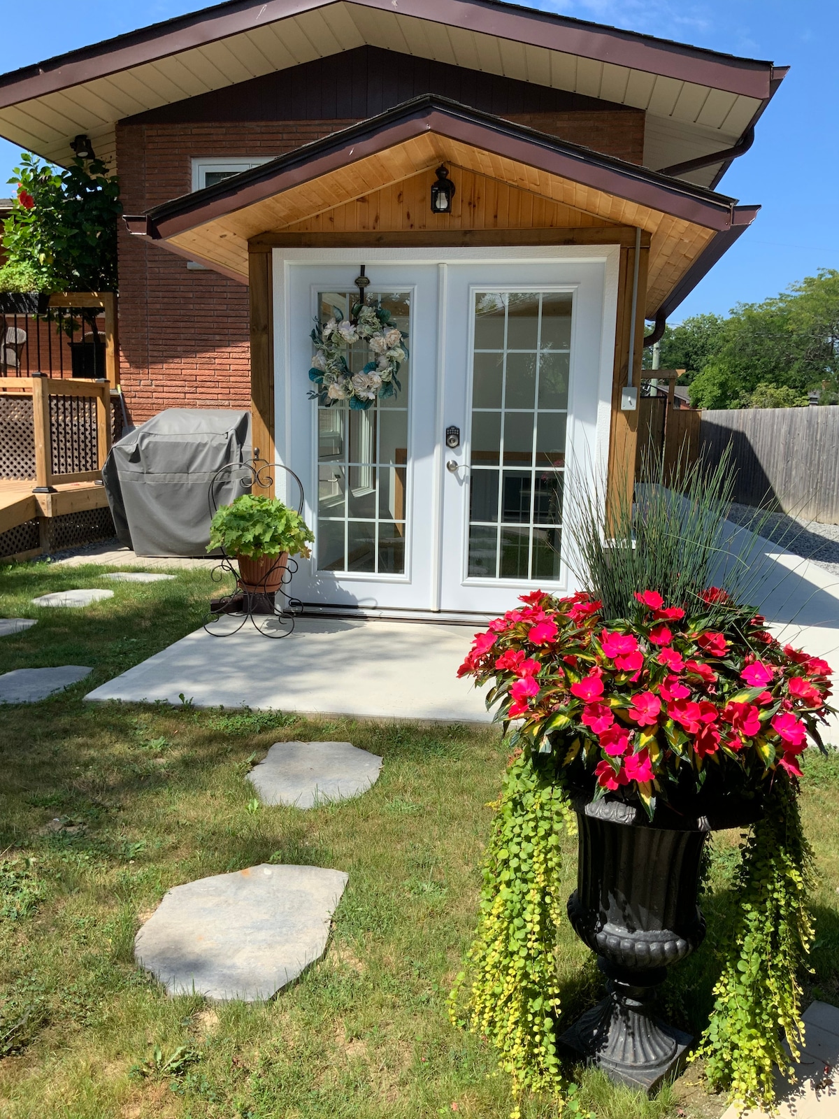 Dette rummelige sted tilbyder kortvarig indkvartering med 2 soveværelser, 2 badeværelser, stue, vaskeri, designet til at tilbyde afslapning og mulighed for at genoplade og opfriske. Det er i nærheden af vingårde og underholdning i Niagara-on-the-Lake (Virgil). Den har et kæmpe lysthus og grønne områder, der hjælper dig med at fordybe dig i områdets skønhed og ro. Den private indgang og grill er blandt de mange faciliteter, der tilbydes.