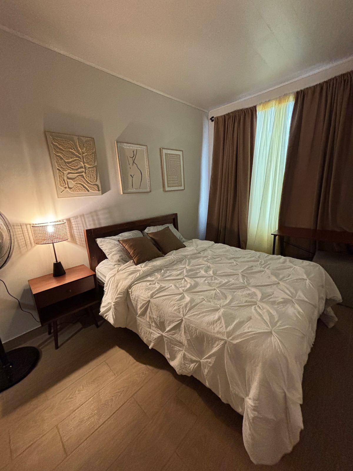 ✨ Denne unikt designede lejlighed er en af kun syv eksklusive lejligheder i La Fortuna, kun tre blokke fra centrum, men gemt væk fra støjende gader. Perfekt til par eller solorejsende, og den har en kingsize-seng, aircondition, højhastigheds-WiFi +200mbps, tekøkken, smart-tv og komplet badeværelse. Udenfor kan du slappe af i din private JACUZZI eller nyde magiske solnedgange fra tagterrassen med betagende vulkanudsigt🌋💫.