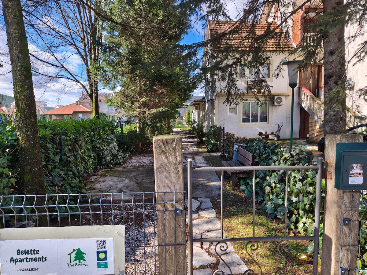 Charmerende lejlighed med udsigt over bjergene Velkommen til vores hyggelige 35m² lejlighed, der ligger kun 2 km fra det berømte kloster Ostrog. Denne velindrettede bolig er perfekt til par eller små familier og tilbyder et afslappende tilflugtssted med en fantastisk udsigt over bjergene. Vågn op til en betagende udsigt over de omkringliggende bjerge, en perfekt kulisse til din morgenkaffe. Uanset om du besøger klosteret eller udforsker de smukke naturomgivelser, er vores lejlighed en ideel base for dit ophold.