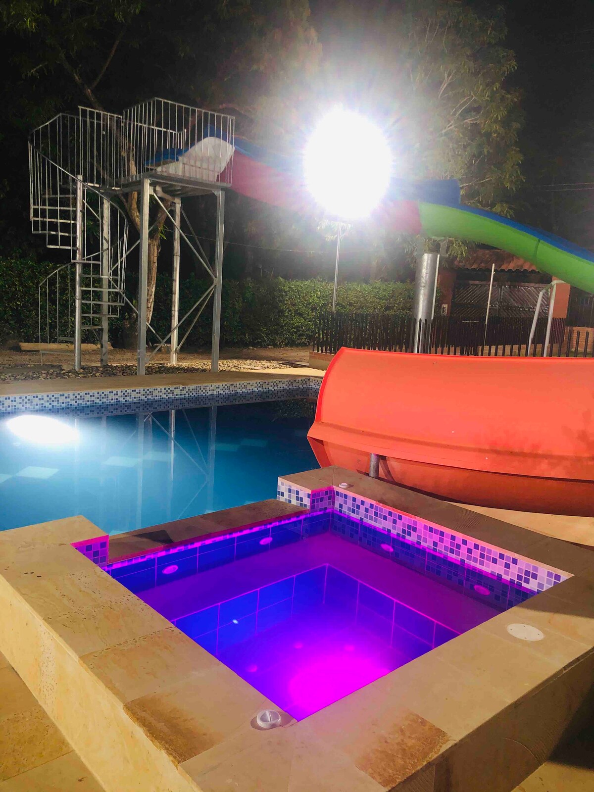 Familiehytte i lukket område, 25 minutter i bil fra Melgar og 30 minutter fra Girardot, med swimmingpool, jacuzzi, grill, rolig atmosfære, hvor du kan nyde et behageligt ophold. Vi kan give dig mobilnummeret på en pålidelig dame, der kan hjælpe dig i løbet af opholdet (ikke inkluderet i prisen)