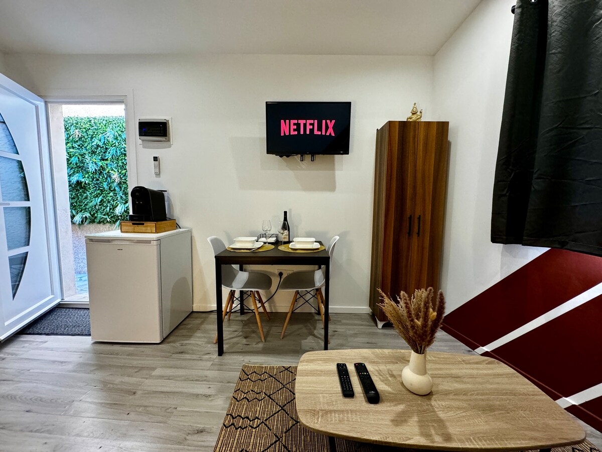 "Le 11" er en lejlighed ⭐️⭐️⭐️⭐️ dedikeret til rejsende, der ønsker et højt niveau af standard samt et innovativt og atypisk design. Den består af et soveværelse med en stor fast seng (160/200) med eget badeværelse og åbent til et italiensk brusebad, et udstyret køkken, en privat terrasse på 15 m2 og en sikret parkeringsplads. Den er også udstyret med et stort 4K-tv med forbundet NETFLIX-streamingtjeneste 🍿🍫🎥
