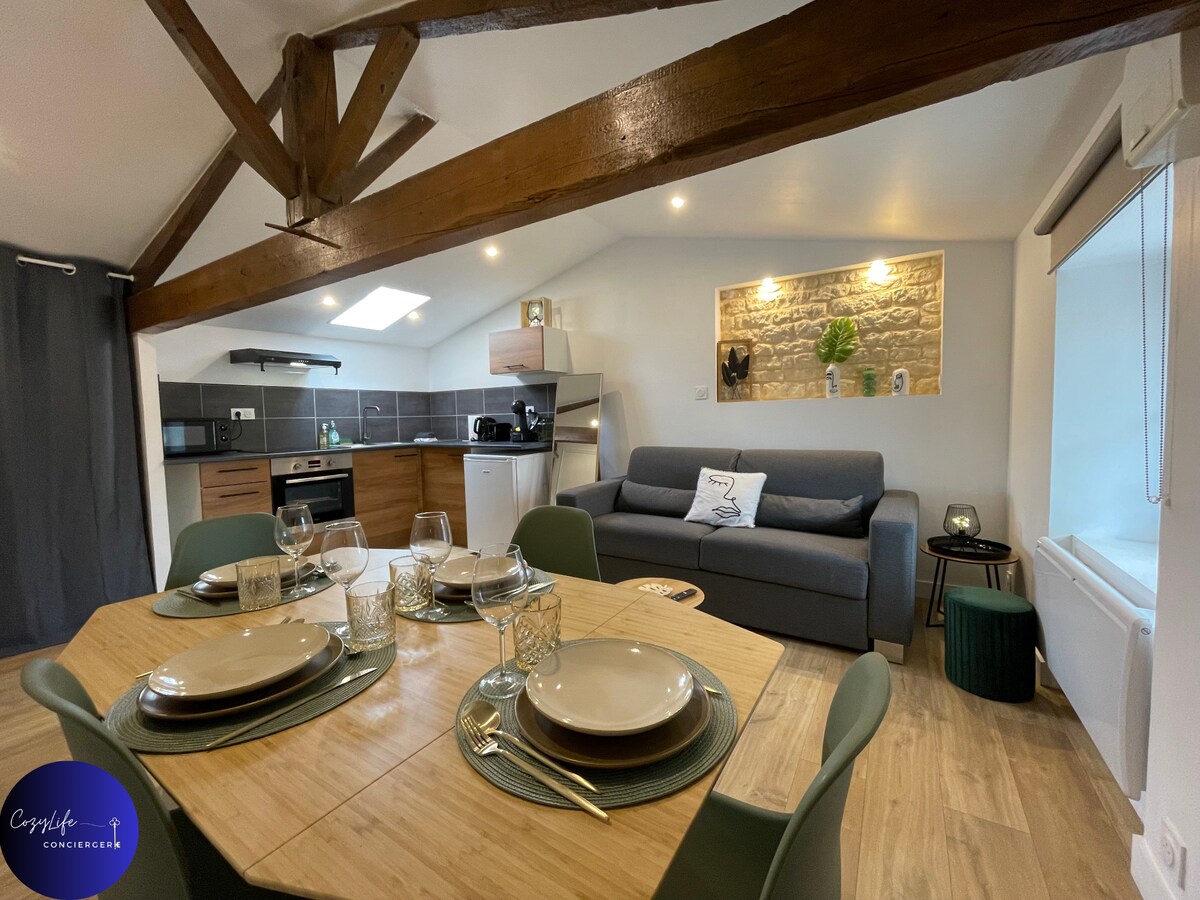 Kom og oplev vores gîte "le BIS". Uafhængig, komfortabel, ny og moderne bolig med terrasse, til 1 person eller 1 par, tæt på byens centrum. Dens 28 m2 tilbyder: et udstyret køkken, stue, et soveværelse med garderobeskab og badeværelse med brusebad, separat toilet. Du vil sætte pris på gulvvarme eller -køling alt efter årstiden. Vi tilbyder et plus ... SPA (kan bruges fra 13:00 til 21:00 i juli og august) ingen adgang til spa, hvis der anmodes om prisnedsættelse.