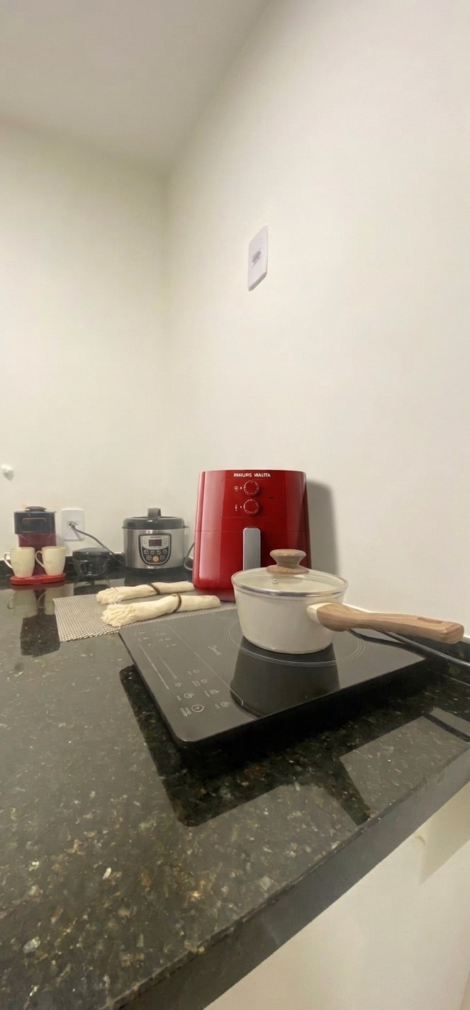 Ideel til dem, der søger stil med raffinement og masser af komfort! Kingsize-seng, stik, USB og læselampe på begge sider 75" Smart TV Meget komfortabel sovesofa Gourmet altan Loftsventilatorer Aircondition 24000Btus Komplet køkken Bruser med dobbelt vandstrøm Skab med 3 låger og spejl i fuld højde Drikkevandsfilter (køkkenhane) Induktionskomfur Vaskeri i bygningen 500 MB internet Sengelinned og håndklæder (hotelstandard) Nyindrettet – Start okt. 2024