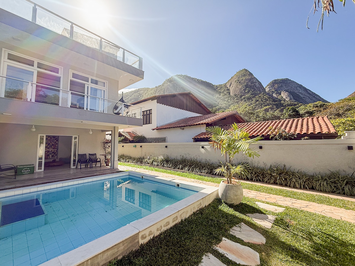 Spektakulært hus 50 m fra Piratininga-stranden, den bedste i området. Vi tilbyder al komfort til din familie. Alle værelser er udstyret med aircondition, og er meget lyse og luftige. Værelser med Smart TV. Gratis Wi-Fi. Fantastisk stue med havudsigt med hængekøjer, smart-tv, minibar og pejs til de koldeste dage. Swimmingpool og grillplads til efter stranden. Et super komplet køkken og et andet køkken til støtte for grill. Garage. To gratis cykler til gæsterne.