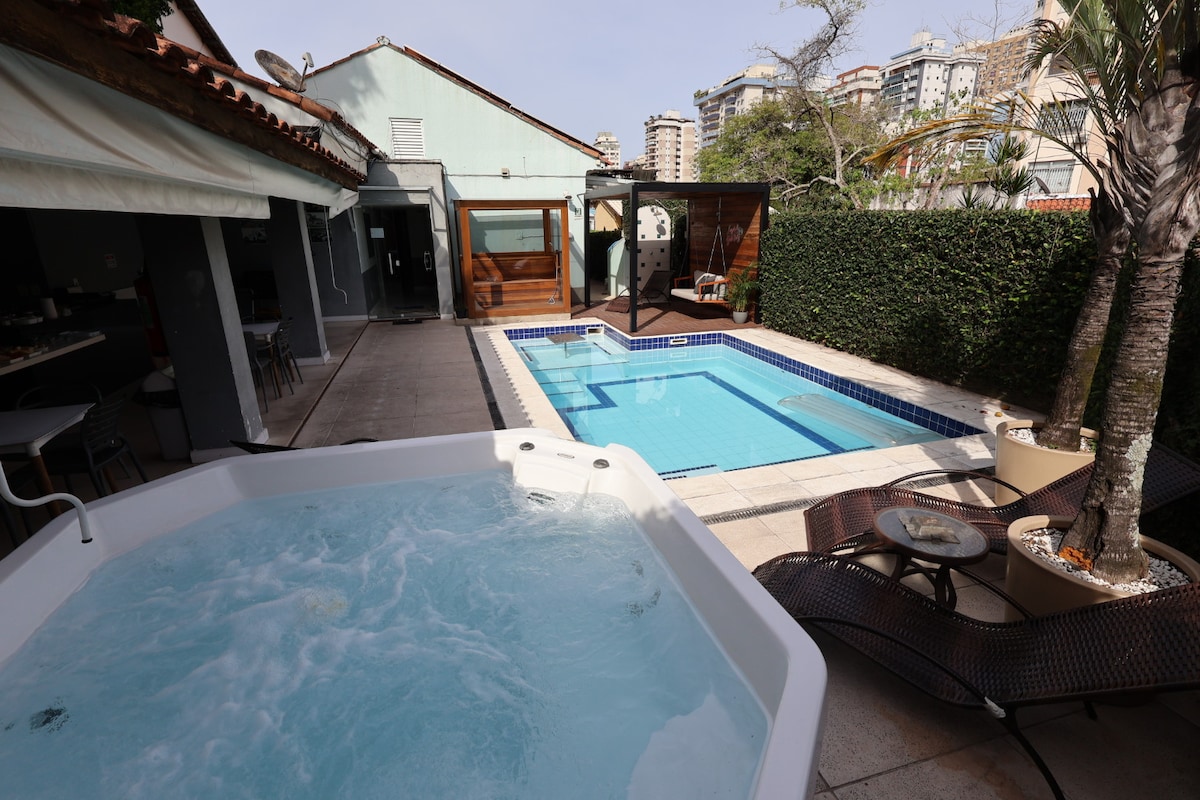 Velkommen til Casa das Margaridas! Vi ligger kun 400 meter fra Itacoatiara-stranden i Niterói, perfekt til surfing, klatring og sjov! Vores fælles værelse har 5 super komfortable senge, ideelle til dem, der leder efter et afslappende og hyggeligt ophold. Hvis du vil reservere hele værelset til din gruppe, skal du bare sende os en besked via Airbnb! Vi har en vidunderlig swimmingpool på tagterrassen med udsigt over bjergene, der er tilgængelig fra 10:00 til 18:00.