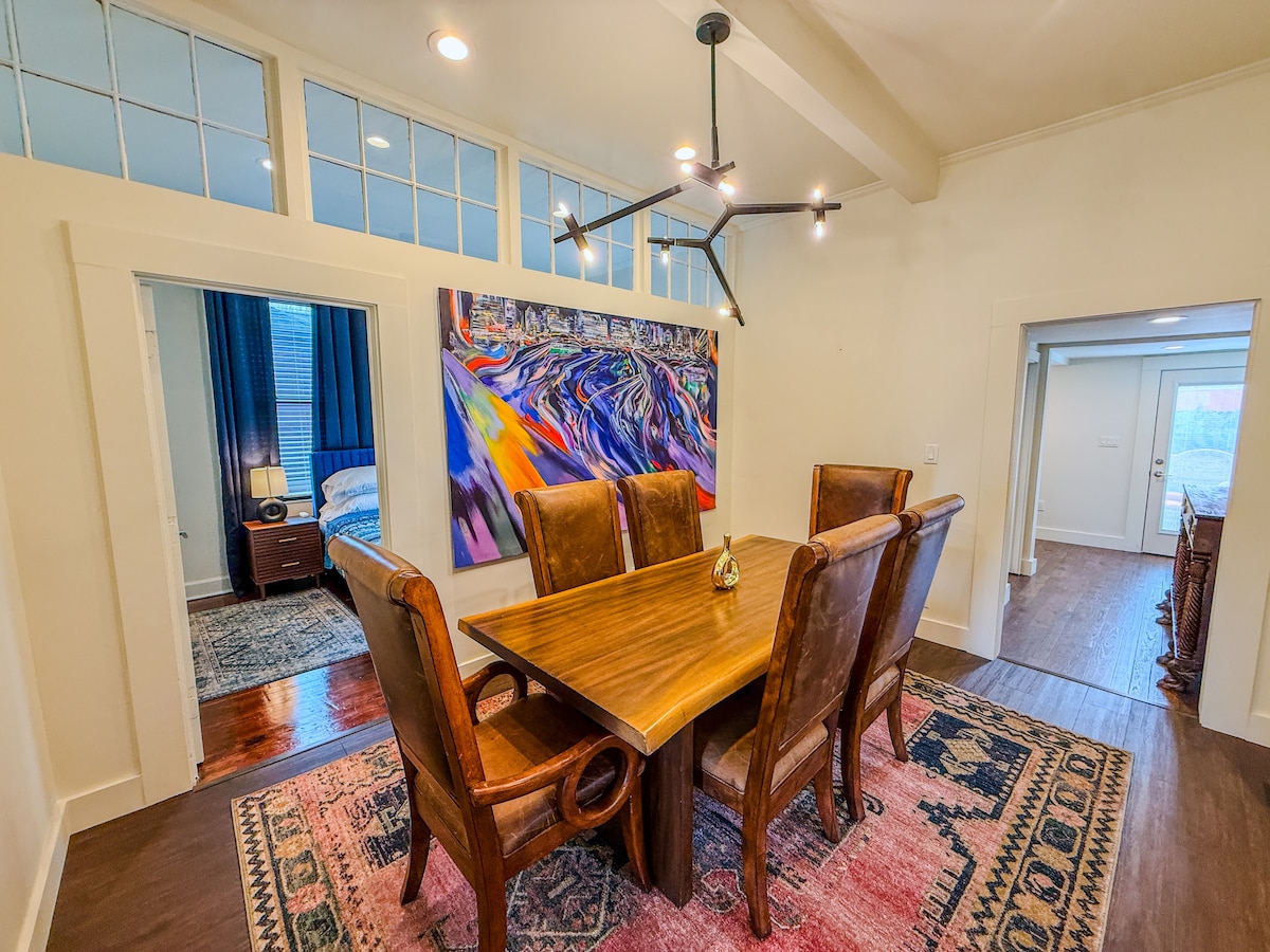Stilfuld | Levende ranchbolig syv minutter fra Uptown, 12 minutter fra lufthavnen. Ferie eller ophold! Sødt/stille nabolag - luksuriøse kingsize- og queensize-madrasser - chic kaffebar, sydlig boho veranda - sociale medier værdig grøn væg - unikt hjem! *Ingen fester eller arrangementer tilladt* Vi har et hjerte for at inspirere andre gennem æstetisk design og få dem til at føle sig varmt velkomne. Vi håber, at dit ophold giver dig netop det.