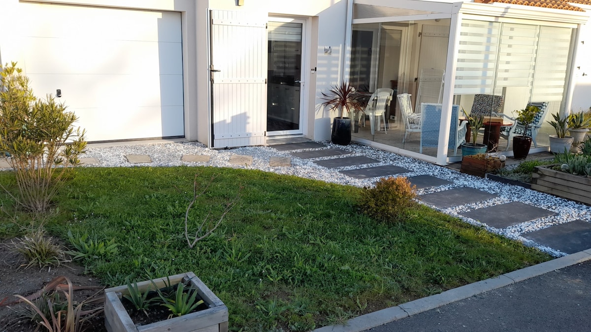 Slap af i denne rolige og elegante bolig. Ny bolig med udsigt over landskabet og 400 m fra en af de smukkeste strande på Jade-kysten (Crève Coeur-stranden), smagfuldt indrettet med temaet "tropisk jungle", beliggende i en stille gade. Her kan du tilbringe en fredfyldt ferie i behagelige omgivelser. Du vil være tæt på cykelstien langs havet, så du nemt kan komme til landsbyen La Bernerie en Retz, hvor der er alle de nødvendige butikker. Pornic ligger 5 km væk.