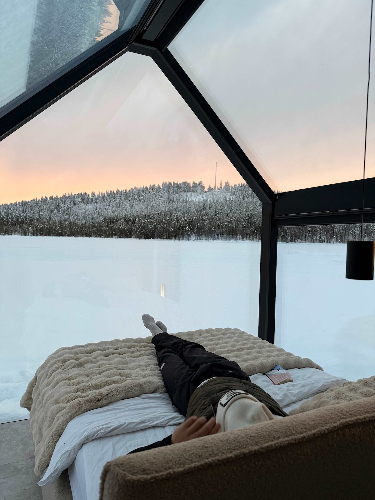 ❄️ Velkommen til en luksushytte med spejlglas og fantastisk udsigt over søen i Arvidsjaur. Dette fristed vækker fantasi og mindfulness. Vinduer fra gulv til loft fordyber dig i Laplands magi, hvor sneklædte fyrretræer, skinnende vand og nordlyset omgiver dig. Nyd førsteklasses komfort, en privat terrasse og arktiske eventyr som snescooter, huskyslæde og mange flere oplevelser med Triple X Adventures.