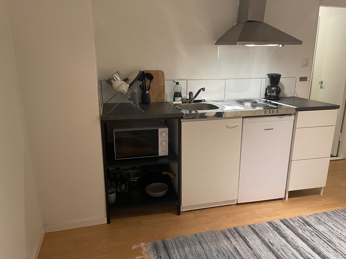 Lille gæstehus på villa grund med køkken, toilet, bruser