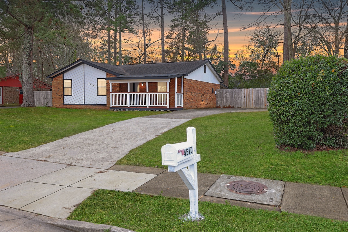 Dette familievenlige ranchhus i flere etager ligger fredeligt i et roligt kvarter med privat indgang til North Augusta Greenway. Ejendommen ligger på 1 hektar jord, der tilbyder forskellige muligheder for udendørs og delvist indendørs områder for at nyde det smukke nabolag. Dette hus er bekvemt beliggende mindre end 3 miles fra mange restauranter og kun få minutter væk fra NIke PeachJam, Augusta University og Fort Eisenhower. Oplev vores afslappende hjem væk fra dit hjem.