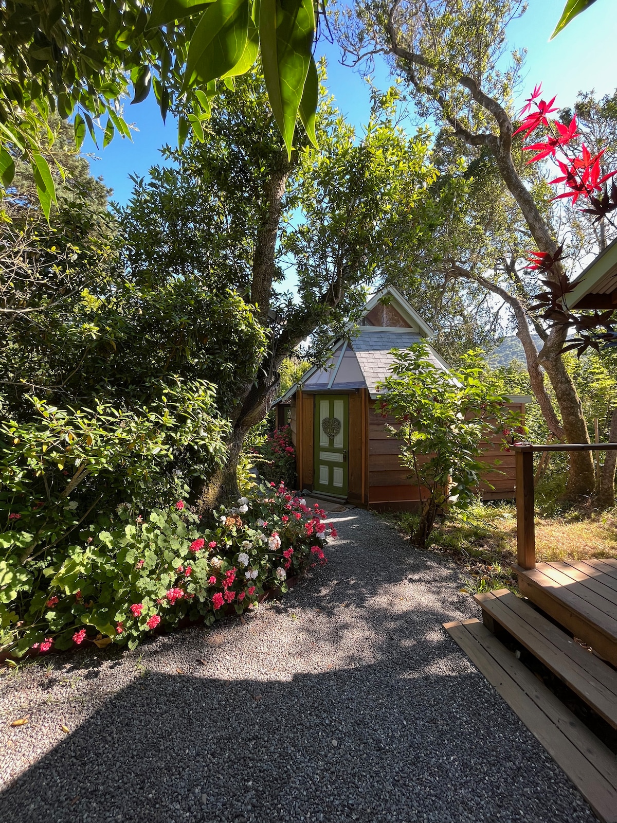 (Prisen inkluderer 10% sengeskat og intet rengøringsgebyr!) Minihuset "barndominium" er et hyggeligt, indbydende og unikt sted kun få skridt fra Ferndales restauranter, butikker, vandrestier og livemusik. Vores beliggenhed betyder, at du kan parkere bilen og gå til alt det, Ferndale har at tilbyde. Nyd vores fredelige have ved bækken og atrium. Fantastisk stop for at udforske redwoods og vandreture. Strand, 5 miles. Værter offentliggør en årlig Ferndale-guide. Sender et link, når du booker. Følg os på Instagram! @ferndaleairbnb.