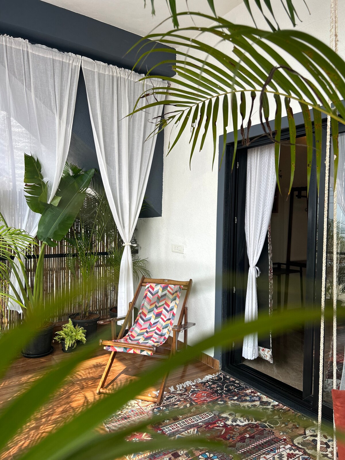 Kanso by Earthen Window er en stille 1BHK i Siolim, formet omkring jord, lys og privatliv. Interiøret er designet til langsomme morgener og uforhastede aftener med kalkvaskede vægge, bløde gulve i mikrobeton og gennemtænkte genstande, der giver det en villa-lignende charme. Soveværelset åbner op til en PRIVAT HAVETERASSE og et afsidesliggende spabad i mikrobeton med JACUZZI, begge med udsigt over uafbrudt grøn skov. Fælles faciliteter omfatter en pool, dampbad, fitnesscenter og sikkerhed døgnet rundt.