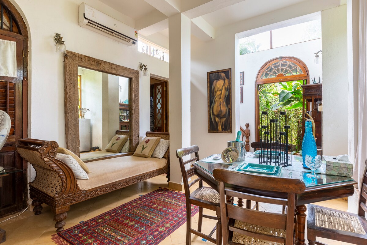 Denne villa "IKSHAA®" med en privat swimmingpool er en af de mest afsondrede og romantiske villaer, der kombinerer luksus med rustik skønhed. Det er en selvstændig villa, der er indbegrebet af eksklusivitet og fuldstændig privatliv. De grønne områder og skoven omkring er charmerende, og alligevel ligger den kun 20 minutters kørsel fra Goa lufthavn eller fra de nærmeste strande i det sydlige Goa. Du vil ikke have nogen problemer med at føle dig hjemme her på IKSHAA®!