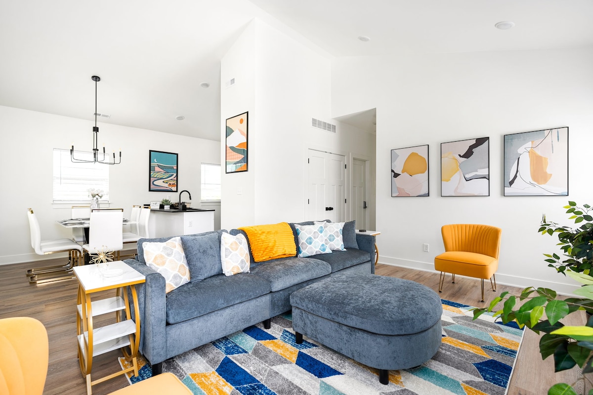 Welcome to your fun & modern Pop Art inspired clubhouse! Whether you're traveling alone or with friends, this beautifully renovated home has everything for a great stay - Fully stocked kitchen - Smart TVs in every room w/ cable - WFH w/ high-speed wifi (500 mbps) & working spaces - In-unit washer/dryer - Board games - Easy checkout, no todo list - Dog friendly Drive to attractions - 4 min: Children's Museum - 10 min: DT Convention Centers - 12 min: Bottleworks District & Mass Ave