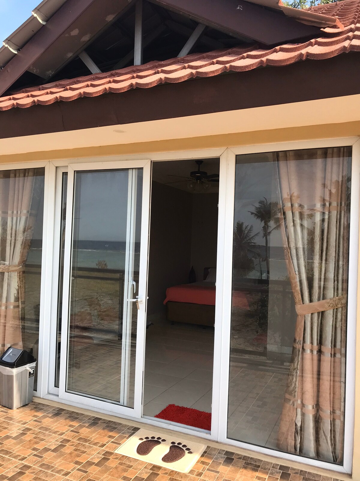 Glem dine bekymringer i denne rummelige og rolige bolig. Vores Sea View Bungalow er vores nyeste tilføjelse til vores indkvartering ved havet, med et toetagers minihjem med et ensuite badeværelse på første etage, fire enkeltsenge ovenpå med smuk udsigt over havet, en queensize-seng nedenunder med potentiale for 1 ekstra madras og verandaer på alle sider med steder at sidde og nyde skønheden i Java Sea. Den er ideel til 4-6 personer, og vi kræver mindst 3 personer.