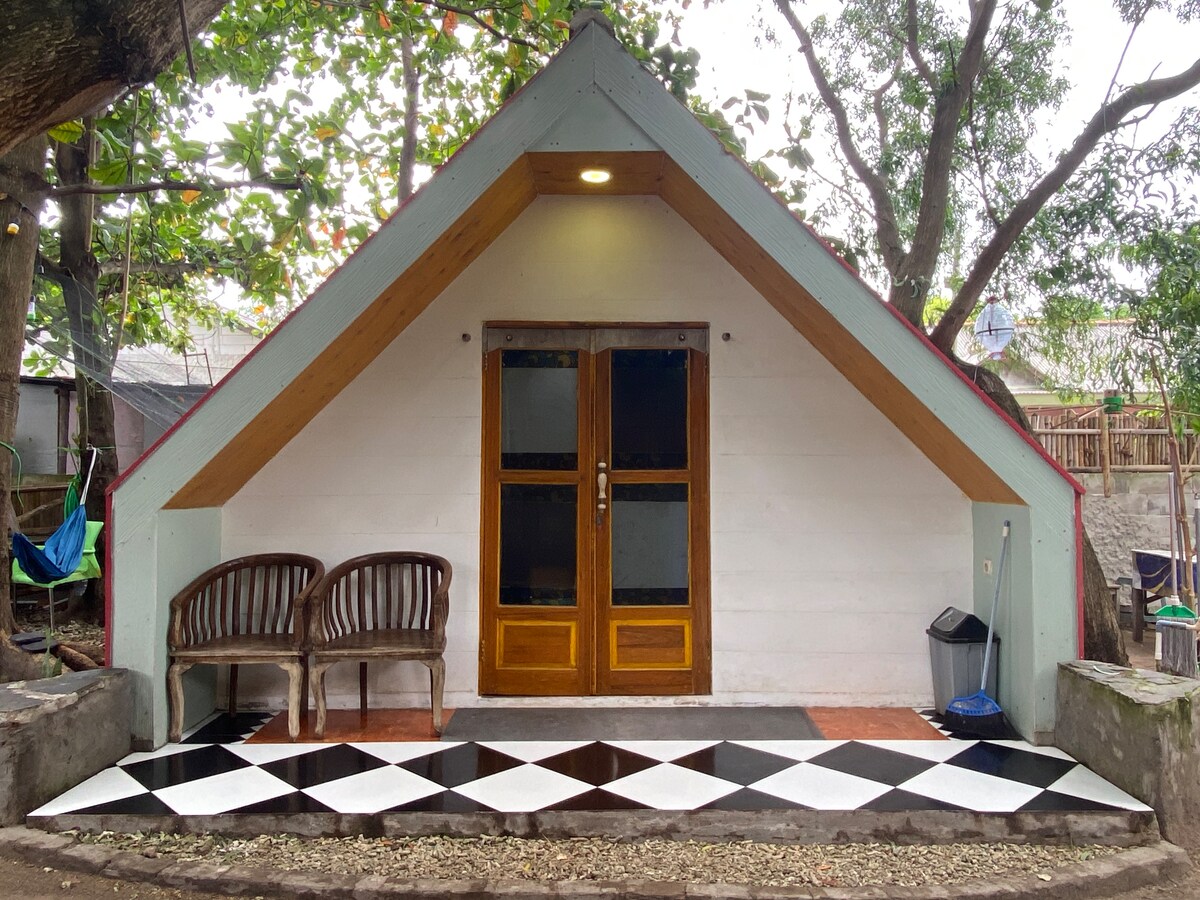 På Tidung Island! Bo i en unik hytte med et trekantet tag med en smuk og kølig atmosfære i skyggen af træer. Komplette faciliteter: en stor, komfortabel seng, tv, ventilator, badeværelse og en afslappende terrasse til at drikke kaffe, mens du nyder havbrisen. Strategisk beliggenhed nær stranden og det ikoniske sted Love Bridge. Perfekt til familieferier, venner eller par! Nyd den tropiske atmosfæres komfort og den stille nat på Tidung Island. En budgetvenlig, mindeværdig ferie? Så er det her det rette sted.