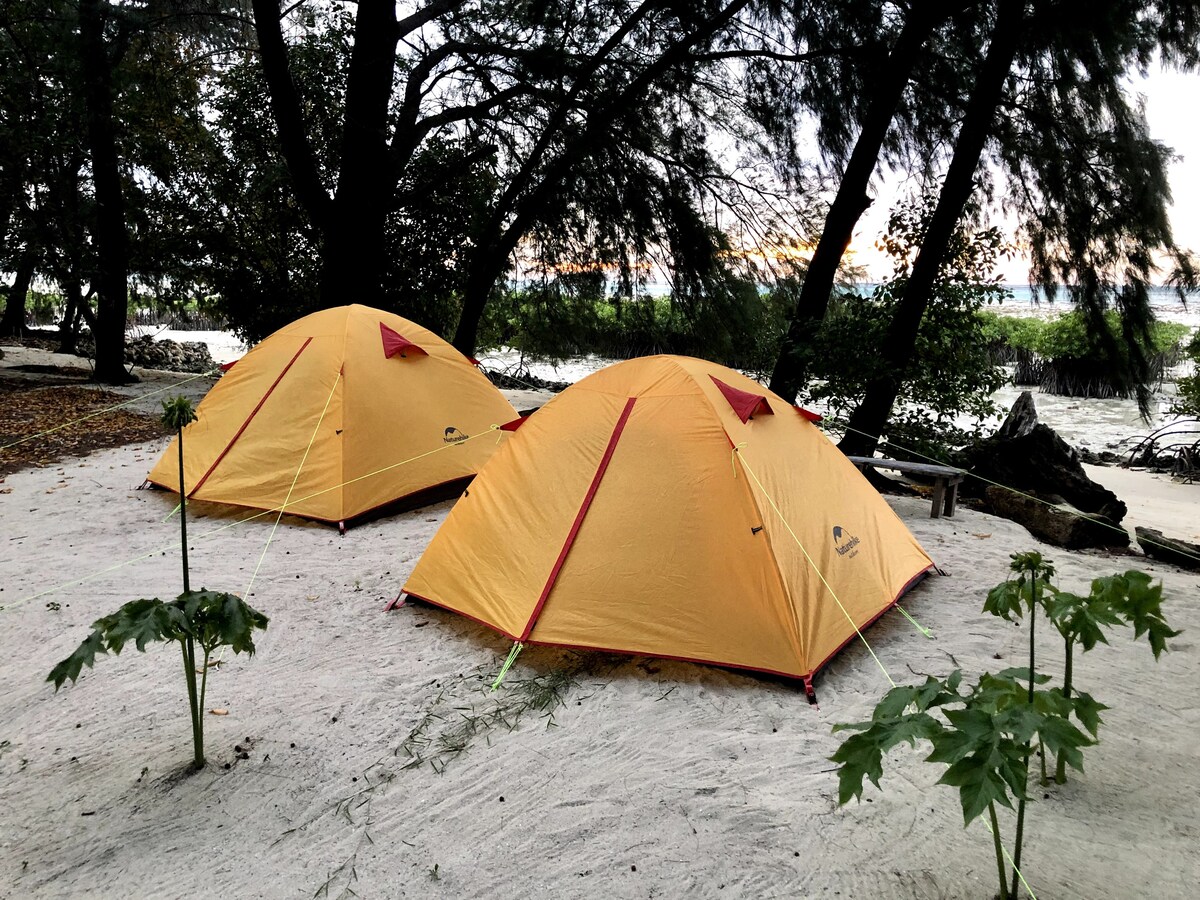 Vores glampingmulighed på Desa Laguna er muligvis det bedste tilbud i Pulau Seribu for folk, der elsker natur og øer, men foretrækker den fulde service på et feriested. Vi har fire store glampingtelte, der kan rumme op til 4 personer hver, og 3 mellemstore glampingtelte, der kan rumme to personer på to enkeltsenge. Hvert glampingtelt er placeret på vores hvide sandstrande og er en kort gåtur væk fra vores seks fælles badeværelser. Glampingteltene har ventilatorer, indvendig belysning og en powerbank og er placeret på trædæk.