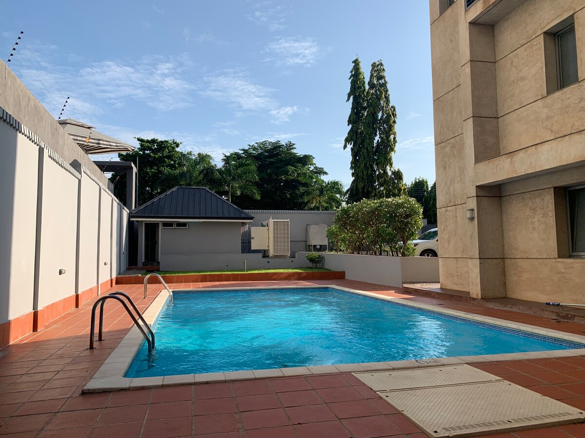 Føl dig hjemme i denne fredelige lejlighed med et soveværelse i Embassy Gardens, Cantonments. Gæster elsker den pletfrie bolig, pålidelig højhastigheds-wifi plus bærbar MiFi og stressfri nøglefri adgang. Nyd rolige morgener på balkonen med udsigt over poolen, et fuldt udstyret køkken, en komfortabel kingsize-seng og stærk AC. Sikre, rolige og centralt beliggende – mange gæster siger, at de ikke ville forlade stedet og altid booker igen. Book nu, eller føj til din ønskeliste.