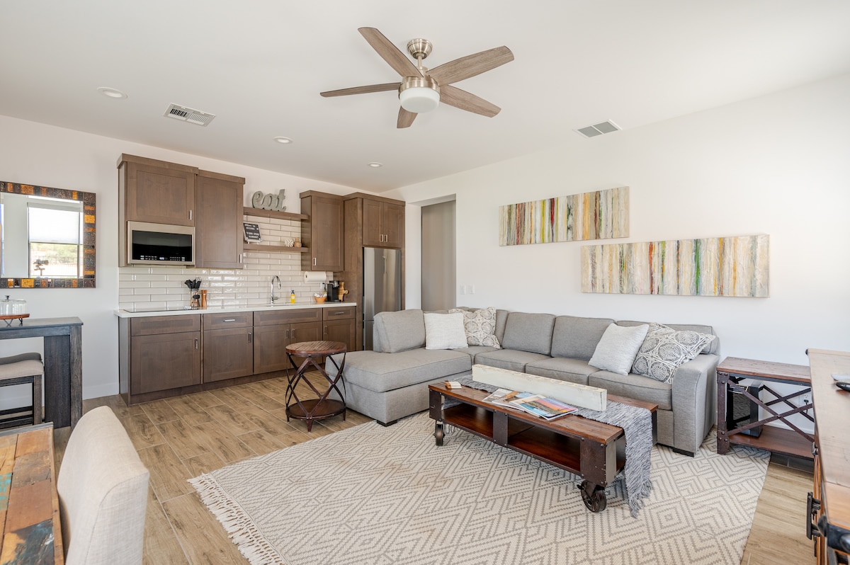 Læn dig tilbage, og slap af i denne rolige og stilfulde bolig. Nyd den helt nye moderne casita med en fantastisk udsigt over bjergene. Beliggende i det nordøstlige Scottsdale i nærheden af flere golfbaner og naturstier. Masser af parkering inklusive autocampere. Boligen omfatter 1 kingsize-seng, 1 queensize-seng og en queensize-sovesofa. 3 fjernsyn inkluderer kabel, NFL-pakke og MLB-pakke.