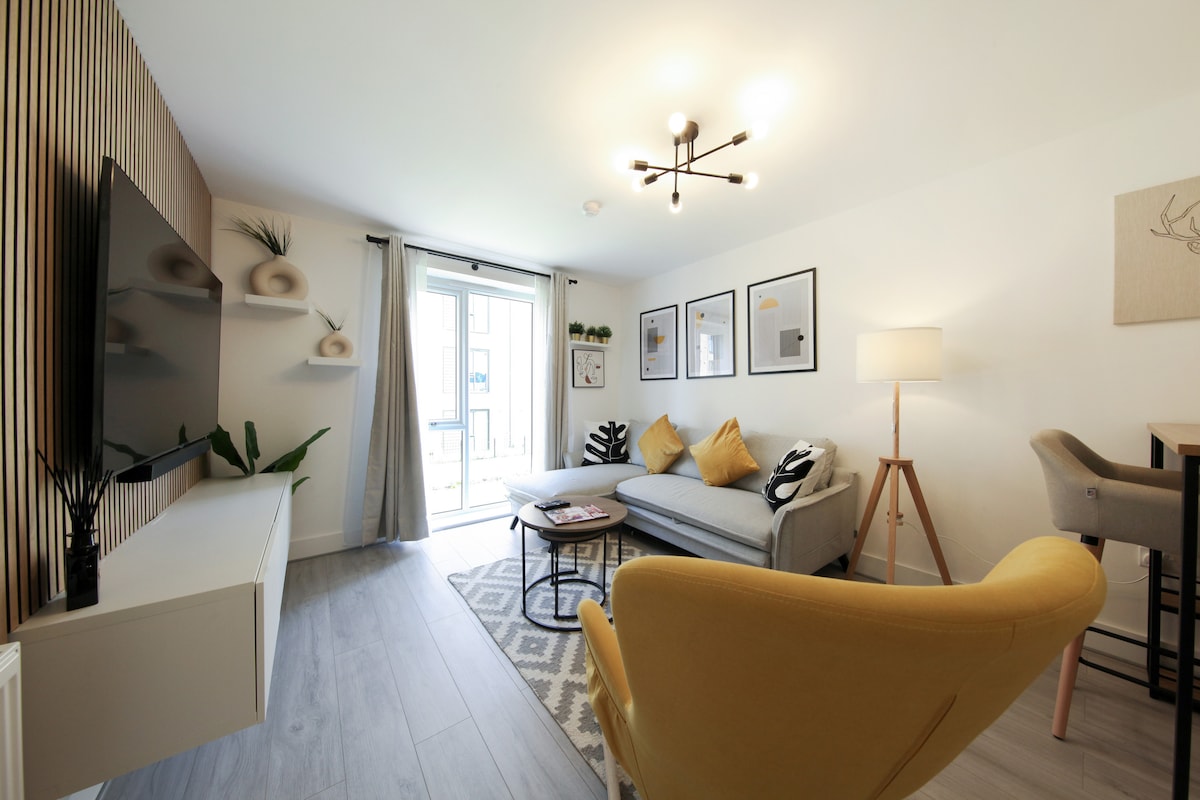 ★ Moderne lejlighed med 1 soveværelse og 1 badeværelse med gratis parkering i Gravesend★ Perfekt til solorejsende, par, entreprenører og forretningsophold. Denne stilfulde lejlighed har 1 komfortabelt soveværelse, 1 moderne badeværelse, et fuldt udstyret køkken, hyggelig åben stue med smart-tv og hurtig wi-fi. Gratis parkering på stedet gør det nemmere. Ideelt beliggende i det centrale Gravesend med fremragende transportforbindelser til London (25 minutter med tog) og nem adgang til Kent-kysten. Sovepladser til 2.